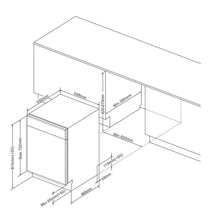 Rozměry pro vestavbu (VxŠxH) 82-87 x 60 x 58 cm